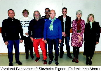 Der Verein „Partnerschaft Sinzheim-Pignan“ hat seine Mitgliederversammlung in der Bürgerbegegnungsstätte Halberstung durchgeführt. Aufgrund der Pandemie waren Geschäfts- und Kassenbericht recht kurz. Die Kassenprüfer bescheinigten Albert Schmelzle gute Kassenführung.